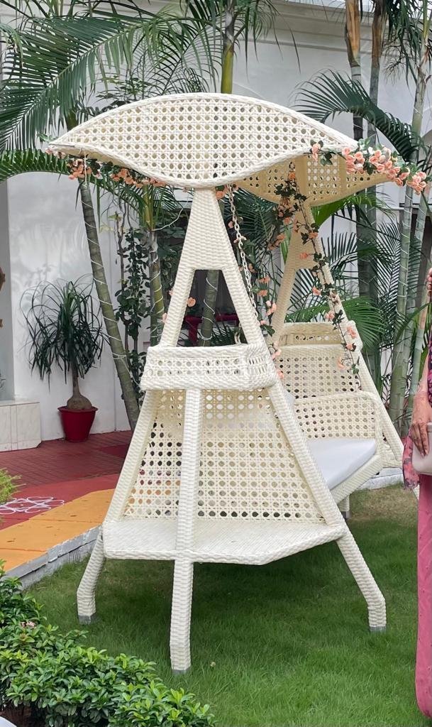 / Outdoor garden saving double seater with stand bunai PVC Ratan vikar frame iron