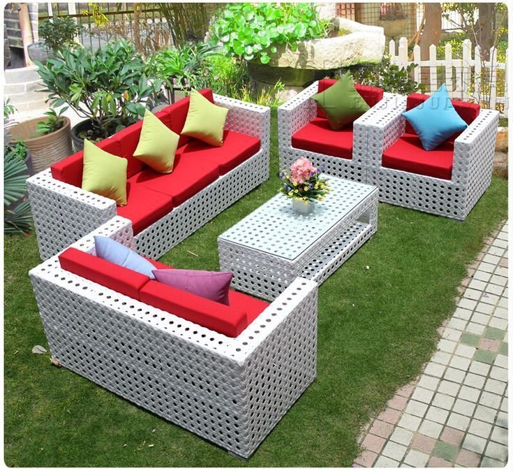 Outer sofa set bunai PVC vikar Ratan frem iron cushion waterproof glass 6 mm